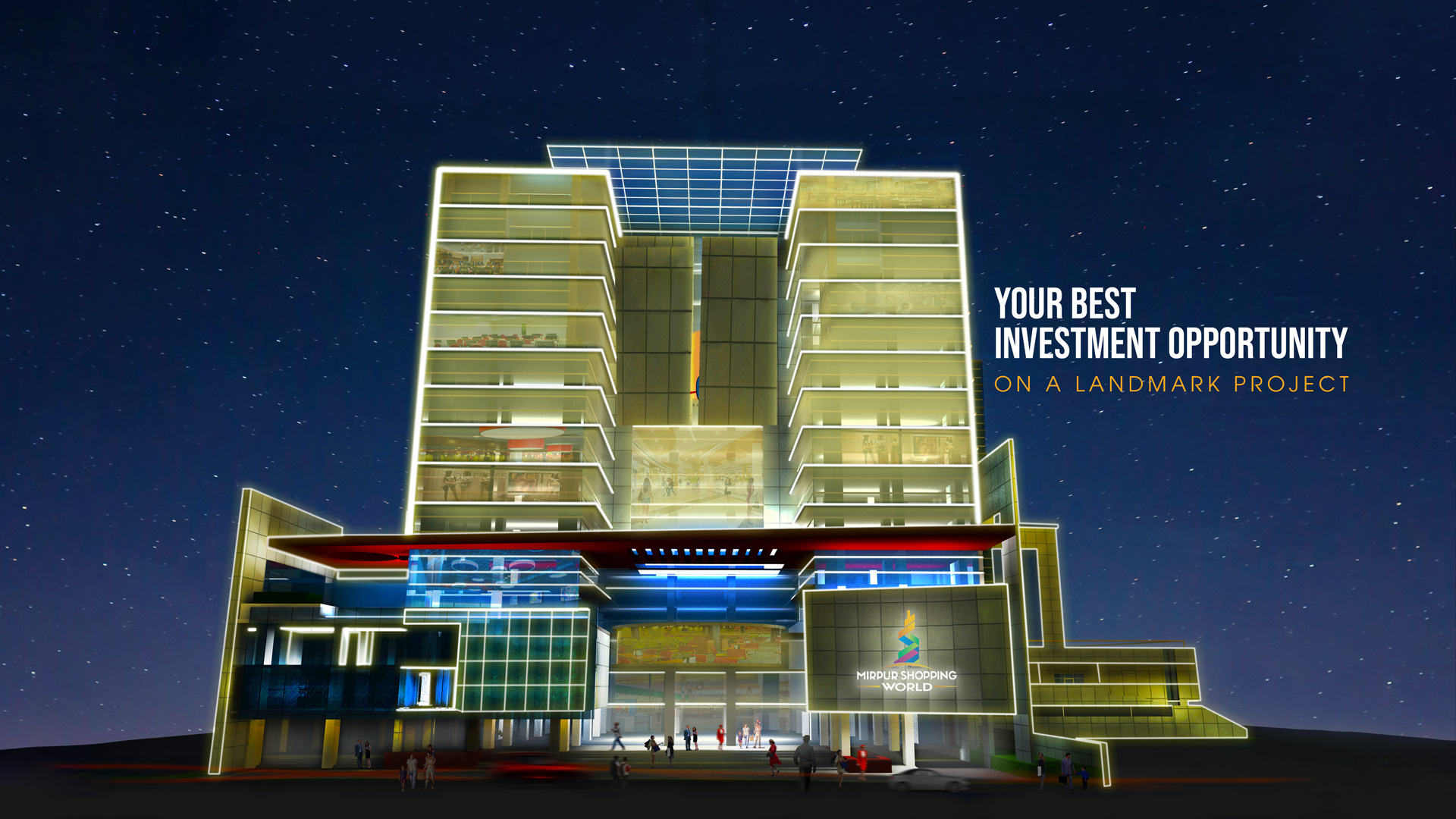 Mirpur Shopping World will bring together World class Luxury Brands, Fascinating Entertainment Concepts, Signature Restaurants, Exclusive Office space, Prestigious Convention Centers, 3 State of the art Cineplexes & more. Located just beside of Mirpur 10 circle, easily accessible from anywhere in Dhaka. With its 15 floors and 4 hundred thousand square feet vast area, 2 basement car parking, 2000+ Commercial shopping units, “Mirpur Shopping World” will provide a fantastic platform for shopping & entertainment for the residents of Mirpur & surrounding area.